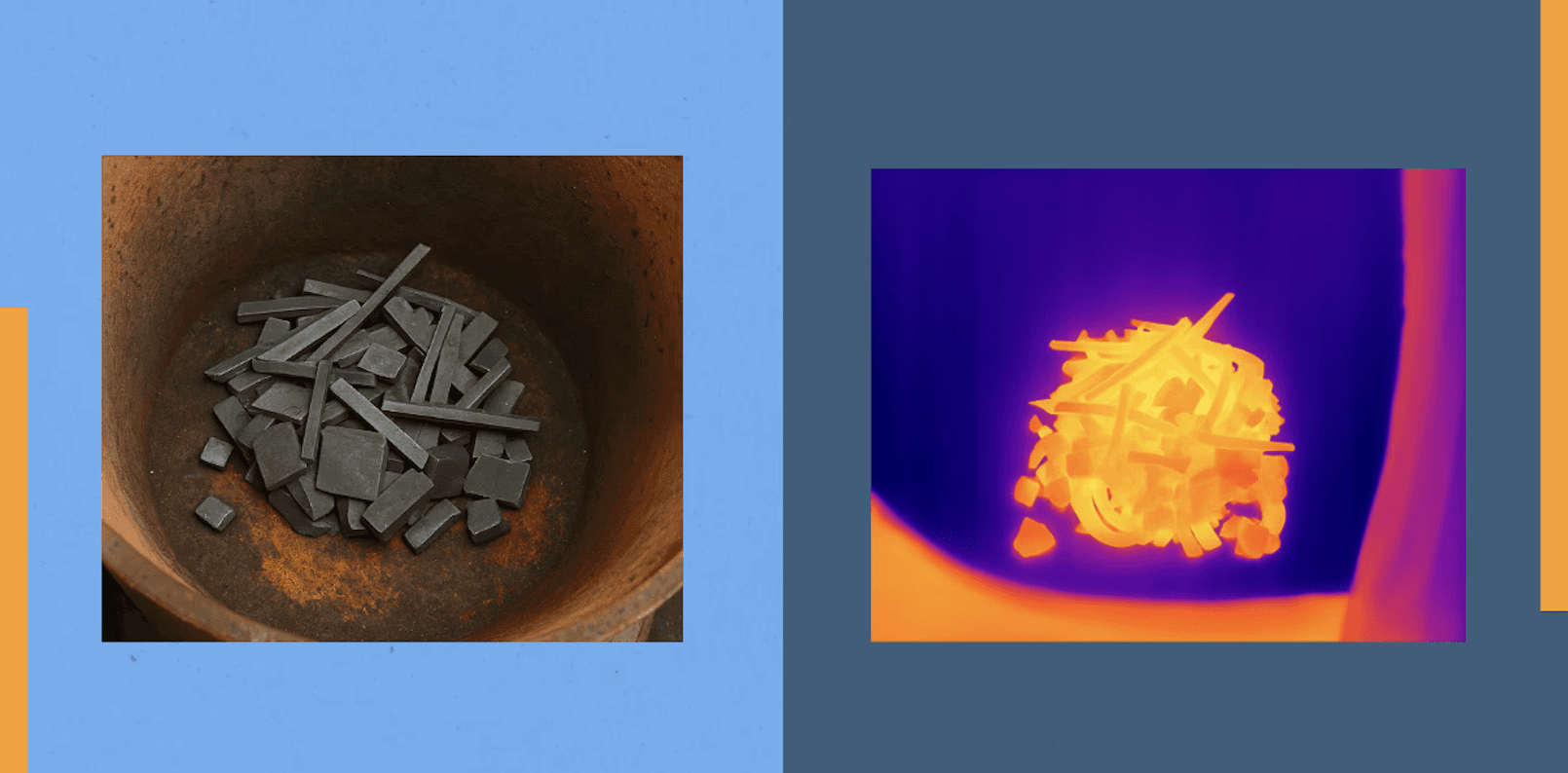 A side-by-side view demonstrating how thermal imaging exposes furnace conditions and charge behavior that operators cannot reliably see with manual checks.
